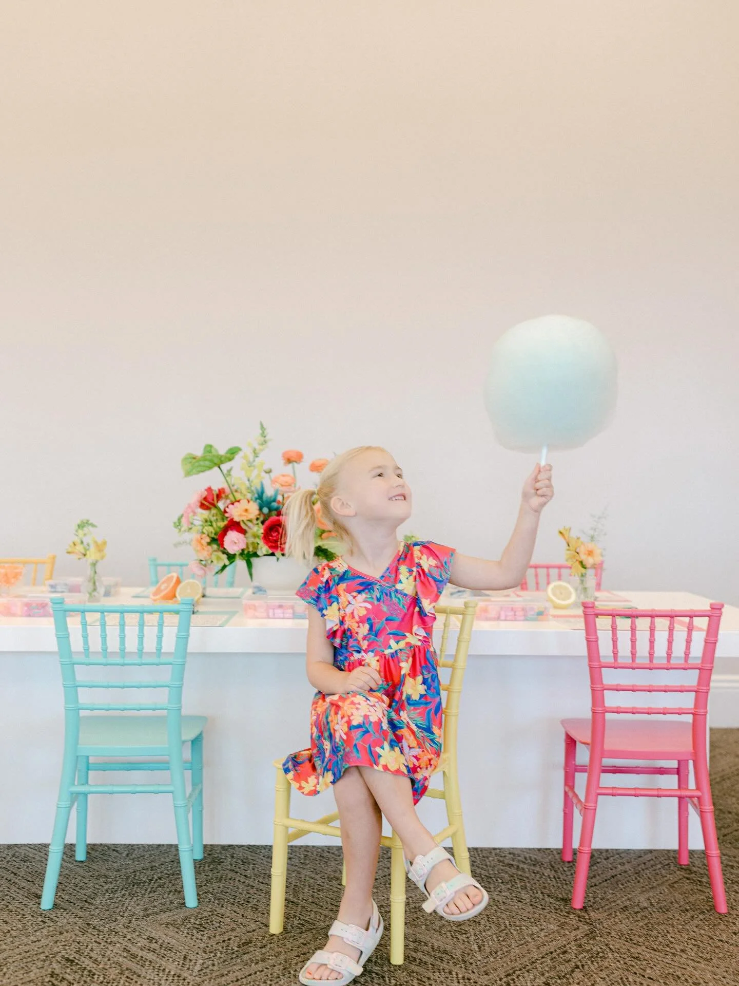 You have the perfect party planned, but are looking for that one unforgettable thing to set it apart…. look no further! Enter the Cotton Sugar Co. mobile cart decked out for your event and spinning up gourmet cotton candy in unique flavors selected by you just for your event. Choose from our list of 45+ (and growing) flavors, and enjoy watching your guests’ faces light up as we spin fresh, fluffy cotton candy puffs just for them. We can even top puffs with edible glitter or colorful sprinkles (or both- it’s a celebration after all!) and spin them onto LED light-up sticks. We can also decorate our cart with custom decals to match your party theme or brand, and create custom edible stickers to adorn the tops.